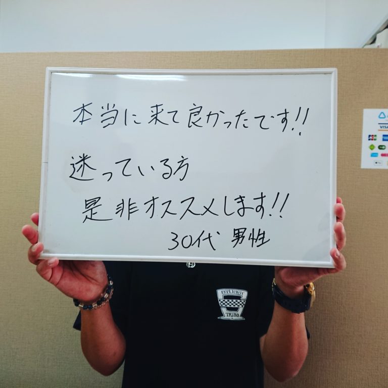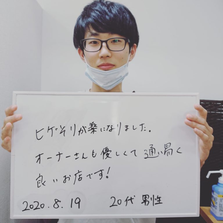 今まで他店サロンに通っていましたが、女性のお客さんと重なった時があったりで恥ずかしかったんですが、こちらのサロンは男性専用で安心できました。