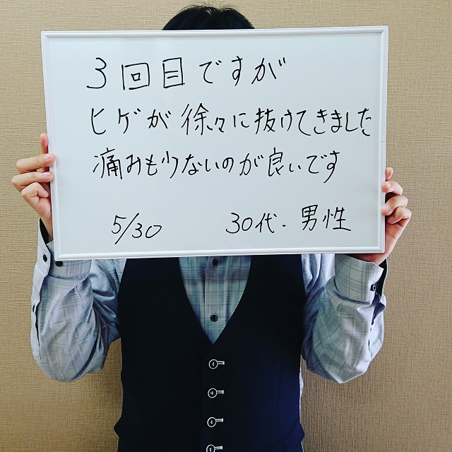 今回で5回目です。ほっぺたと首のヒゲがほぼ生えてこなくなりました。